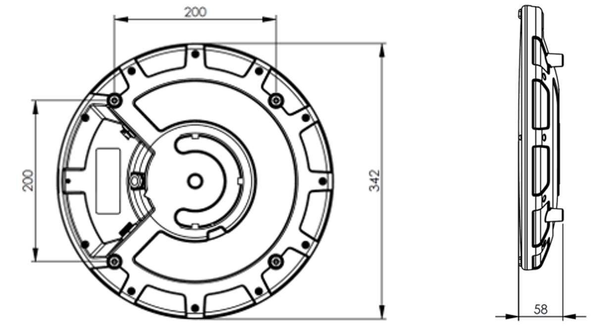 The Q35’s mounting holes are arranged according to VESA MIS-F, 200, Y, 6 standard (Four M6 threaded holes in 200x200mm pattern). This makes the device compatible with a wide range of mounting brackets available on the market, allowing the selection of the most suitable one for the installation environment in question.
