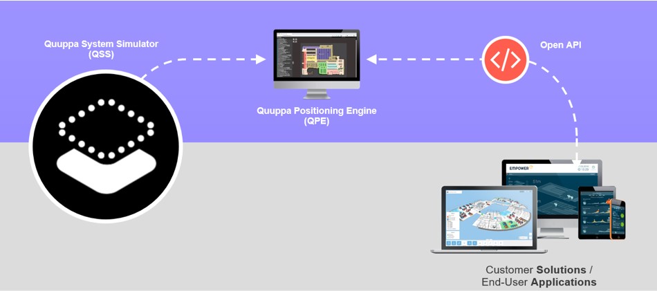 The Quuppa System Simulator (QSS) is an application that runs within the Quuppa Site Planner (QSP). It creates a virtual Quuppa system that sends a simulated data stream of positioning packets to the Quuppa Positioning Engine (QPE). This data is similar to that which is sent from the Locators to the QPE in a real-life deployment.